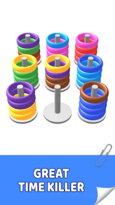 Hoop Sort is a fun and challenging game where you must move colorful hoops and sort them by color. With hundreds of levels to enjoy, this game is perfect for anyone who loves logic-based puzzles. The clean and minimalistic design adds to the simple and satisfying gameplay. Plus, it's suitable for all ages, making it a great game for the whole family to enjoy.