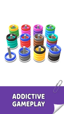 To play Hoop Sort, simply tap to pick up a hoop and place it on another rod. The goal is to stack all the hoops so that each rod only has one color. This requires logic and strategy to avoid getting stuck. But don't worry, you can always reset or undo moves if needed. And the best part? You can play offline, anytime and anywhere.