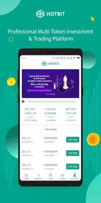 Hotbit supports trading among various types of tokens, giving users the flexibility to trade with different methods. The platform also offers real-time price updates, allowing users to stay informed about the market trends and make informed trading decisions. Additionally, Hotbit provides professional K-Chart index analysis, giving users valuable insights into the market and helping them make strategic trades.