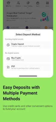 Hotcoin is a secure and user-friendly app that allows you to buy, sell, and trade various types of cryptocurrencies, including Spot, Futures, Margin, and Financial products. By joining Hotcoin, you can grow your earnings and even earn commissions by inviting friends to trade with you. The app offers a quick and easy way to buy crypto using familiar payment methods such as credit/debit cards, bank transfers, and P2P transactions. You can trade and hold popular cryptocurrencies like Bitcoin, Ethereum, Dogecoin, Solana, and many more.