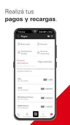 Transferring money is made simple with the app, as you can transfer funds to third parties or between your own accounts. You can also schedule up to 50 beneficiaries and save frequent or favorite transfers. The app also allows you to make payments for services and taxes, manage upcoming expirations, and make recharges.