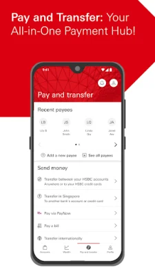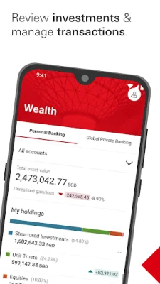 The HSBC Singapore app is a convenient and secure way to manage your banking needs on your mobile device. With this app, you can easily register for online banking using your Singpass app or photo ID and selfie for verification. You can also generate a digital secure key for added security without the need for a physical device. One of the key features of this app is the ability to open a bank account within minutes and immediately register for online banking. If you are unable to complete the application in one go, you can easily resume it at a later time. Additionally, eligible customers can open an investment account with just a few taps and have instant access to Equities in Singapore, Hong Kong, and the United States, as well as Unit Trust, Bonds, and Structured Products. The app also allows you to conveniently manage your securities trading, review your investment performance, and make global money transfers. You can also use the PayNow feature to send money instantly using just a mobile number, NRIC, Unique Entity Number, or Virtual Payment Address. Another convenient feature is the ability to scan SGQR codes to make payments at participating merchants across Singapore. With the HSBC Singapore app, you can easily manage your transfers and payees, add new billers, and make payments securely anytime and anywhere. You can also view and download up to 12 months of eStatements for both your credit card and banking accounts. The app also allows you to instantly activate new debit and credit cards, report lost or stolen cards, and temporarily block or unblock your cards. You can also take advantage of features such as balance transfers, spend instalments, and a rewards program to redeem credit card rewards that suit your lifestyle. The app also offers a virtual card feature, allowing you to view your credit card details and start spending online before your physical card arrives. And if you need any assistance, you can easily connect with HSBC through the app's chat feature. For added convenience, the app also allows you to view your personal financial data, including information from other banks, securely through FinConnect (SGFinDex). You can also update your personal details, such as your phone number and email address, to ensure seamless communication. It's important to note that this app is designed for use in Singapore and the products and services offered are intended for Singapore customers. HSBC Bank (Singapore) Limited is authorised and regulated by the Monetary Authority of Singapore. If you are outside of Singapore, you may not be able to access all the features and services offered through this app. In summary, the HSBC Singapore app offers a comprehensive and convenient way to manage your banking needs on the go. Download it now to enjoy digital banking at your fingertips.