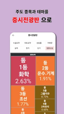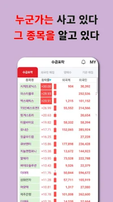 이 애플리케이션은 수급, 차트, 실적 데이터를 기반으로 다양한 시장 정보와 종목 움직임을 직관적으로 파악할 수 있도록 도와주는 도구입니다. 이 앱의 주요 기능으로는 테마와 전광판, 수급 포착 시스템, 차트 포착 시스템, 실적 포착 시스템, 종목 점수 기능, 그리고 단방향 메신저가 있습니다. 이 앱은 전문적인 투자 데이터를 기반으로 종목의 흐름을 파악하고 싶은 분들, 수급, 차트, 실적 정보를 종합적으로 분석하여 투자 전략을 세우고 싶은 분들, 그리고 직관적인 UI로 빠르게 종목을 탐색하고 매매를 연계하고 싶은 분들에게 추천됩니다.