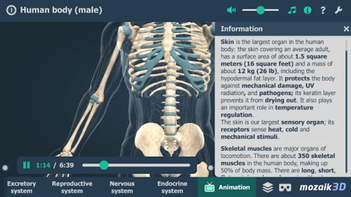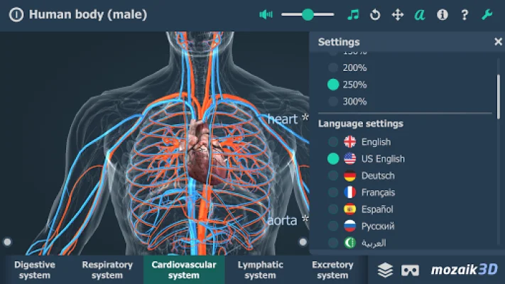 In summary, this application is a fun and interactive way to learn about the human body's organ systems. With its 3D scenes, narrations, animations, and quizzes, it provides an engaging learning experience for users of all ages. The availability of multiple languages and VR mode also adds to its educational value. Whether you are a student or simply interested in learning more about the human body, this application is a great resource to have.