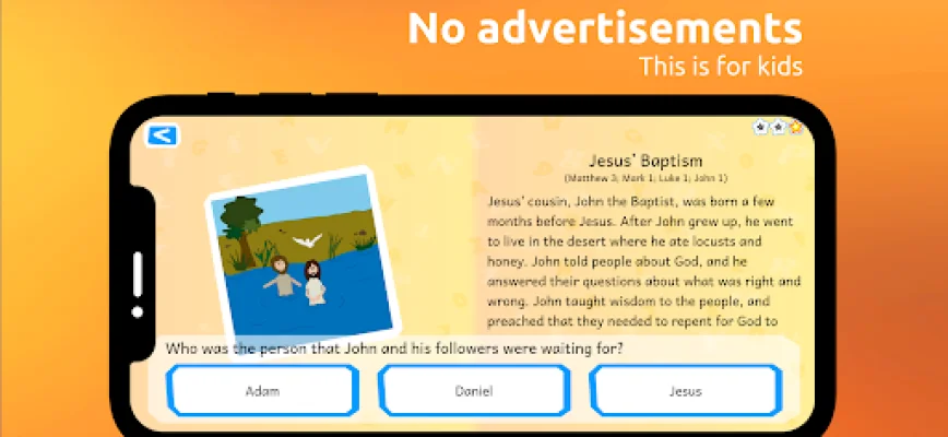 This app is designed to help children understand and engage with the Bible in a fun and interactive way. After reading a passage from the Bible, the child will answer a few questions to demonstrate their understanding. The app includes a scoring system with stars to motivate the child and make the experience more enjoyable. With a variety of stories from both the Old and New Testament, this app is constantly expanding with new content being developed.
