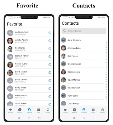 If you're tired of the same old dialer look, then iCall Dialer Screen & Contacts is the perfect choice for you. This app offers a variety of features, including the ability to view, search, and manage your contacts, see your recent call history, and add or remove contacts from your favorites list. It also has a user-friendly interface with options for call waiting, merging calls, and swiping.