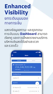 The Payment Services feature allows users to make a variety of electronic payments, such as transfers between Bangkok Bank accounts, payroll payments, and direct credits to business counterparts. Users can also make domestic fund transfers to other banks and use the PromptPay service. For international transactions, users can make outward fund transfers. The Smart Payment Advisory Services feature helps users determine the best transaction option for their specific needs. Customers can also manage their own payments by setting up stop or hold instructions, and can access additional services such as transaction advice and beneficiary validation.