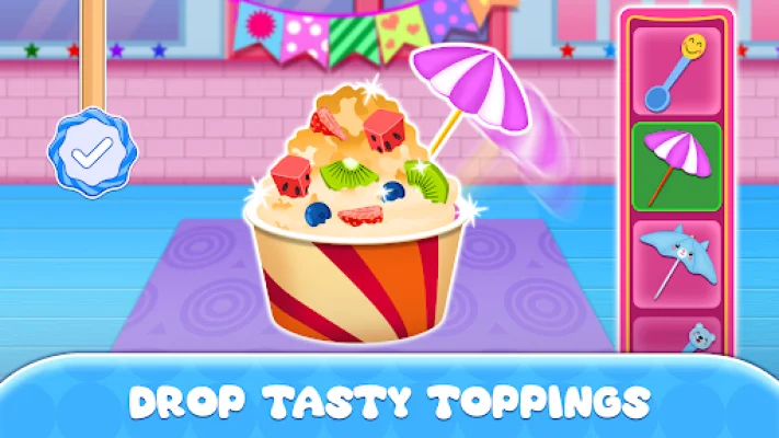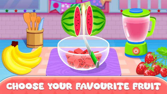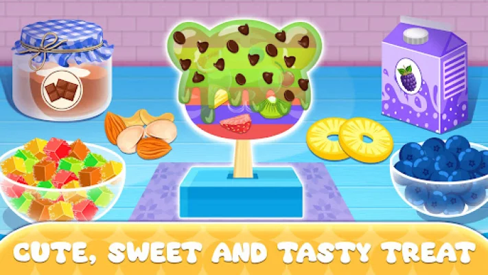 The game offers a wide variety of flavors and decorations for children to choose from, including strawberry, banana, watermelon, chocolate, vanilla, blueberry, and kiwi. They can mix syrups, cut fruits, pour milk, and decorate their desserts with sprinkles, cookies, chocolates, jelly cubes, and candy. Each treat is unique and can be customized to suit the child's preferences.