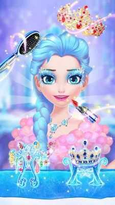 The Ice Palace is hosting a grand party and invites you to join in on the fun! As you enter the palace, make your way to the Queen's dressing room, a beautiful wonderland designed specifically for girls. 🎈🎈 Here, you can indulge in a relaxing spa treatment, apply delicate makeup, choose from a variety of stunning clothes, and complete your look with a pair of gorgeous shoes. With your transformation complete, you will surely become the shining star of the party! 🥳🥳