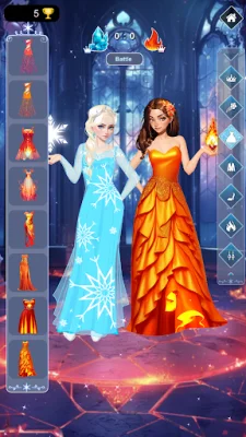 This application is all about dressing up two girlfriends in different outfits and creating a unique style. It offers a variety of options, from ball gowns to everyday dresses, and allows you to play without an internet connection. The two sisters in this game are princesses, one with a cold heart and the other with a fiery personality. As the player, you can choose to dress them in cold blue shades or fiery dresses, depending on the mood you want to portray.