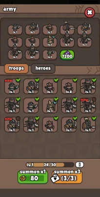 Players can use gold earned in battle to summon new units and expand their squad, unlocking additional slots to deploy more troops and customize their strategy. They can also prestige to reset progress and earn powerful heroes for free, and strengthen their army by sacrificing lower-tier units to upgrade key fighters.