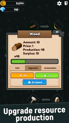 This application is designed to help users research and discover new recipes for resources. By upgrading the speed of learning, users can earn more coins by selling their resources. This allows for a more efficient and profitable resource production process.