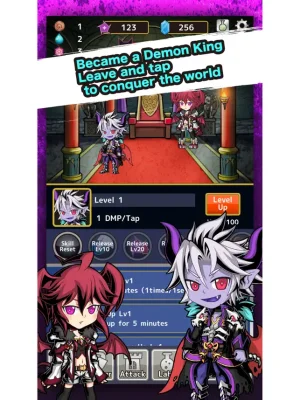 An idle game is a type of role-playing game that can be played during short breaks. In this game, you have the opportunity to become the Demon King and conquer the world through inactivity and tapping. The game features various elements such as monsters, enhancements, items, skills, punishment, and voice acting to make the gameplay more engaging and immersive.