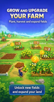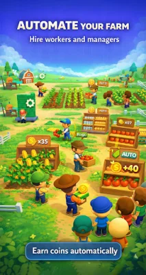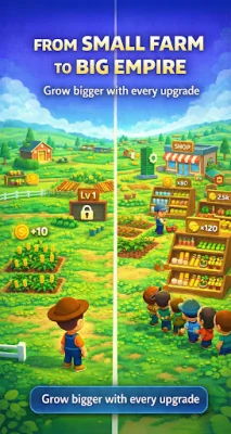 This application is a mobile game that allows players to relax in a friendly countryside world while building and managing their own profitable idle farm. The game features 3D graphics, colorful environments, and satisfying animations for a smooth and enjoyable experience. Players can choose to play online or offline at their own pace, with the farm continuing to earn coins even when they are not actively playing. The main objective of the game is to turn a small field into a powerful farm tycoon business. This can be achieved by planting and harvesting crops, upgrading machines, and building barns, silos, and factories to process raw harvests into more valuable goods. Players can also hire managers to automate tasks and increase their farm's efficiency. In addition to managing crops and production, players can also take care of adorable farm animals such as cows, chickens, and sheep. These animals produce milk, eggs, and wool, which can be sold for profit. As players progress and level up, they can unlock new areas of their village farm and upgrade stables and pastures to boost production. The game also offers customization options, allowing players to choose their own strategy for success. They can focus on crops, animals, or full automation to become the richest farm tycoon. With true idle gameplay, offline farming and rewards, and easy-to-use controls, this game is perfect for relaxing moments or short breaks without Wi-Fi. Players can pre-register for the game to receive an exclusive bonus pack when it launches. So, if you're looking for a fun and satisfying farming simulator experience, be sure to check out this idle farm game on your mobile device.