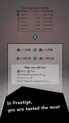 Idle Gem is an exciting idle mining game that has been constantly evolving with over 30 updates and 25+ new contents added in the last 6 months. This game allows you to continue mining even while you're away, making progress automatically. As you dig deeper, you can collect gear and materials that will help you become stronger and more successful in your mining journey. One of the unique features of Idle Gem is the ability to merge and upgrade your gear. By fusing and enhancing your collected equipment, you can instantly power up and increase your mining speed and battle strength. This allows you to see your progress grow in real time, giving you a sense of satisfaction as you dig deeper than you did yesterday. In addition to mining, Idle Gem also offers intense wave battles where you can challenge yourself in wave-based RPG combat. Your gear builds and upgrade choices will determine your victory, and beating your max wave record will give you an incredible feeling of accomplishment. To keep the game interesting and engaging, Idle Gem also offers a prestige system where you can restart with carryover bonuses. Each time you restart, the game becomes smoother and more efficient, providing a fresh roguelite adventure every time. What sets Idle Gem apart from other idle clicker games is its frequent content updates. With 30+ updates and 25+ new features added in just 6 months, this game is constantly evolving and providing players with new and exciting experiences. So why wait? Join the ever-evolving idle clicker adventure of Idle Gem now!