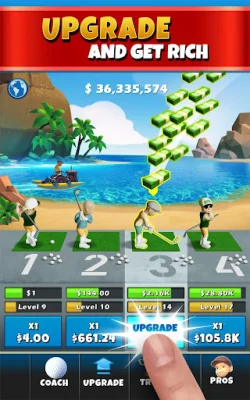 As you progress in the game, you can keep your golfers on top while on tour by upgrading their tees at the driving range. Don't forget to hire pros and other golf masters to help you along the way. Putt your way to victory and become the ultimate golf tycoon! 👟