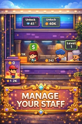 With top game features like building your restaurant empire, hiring and managing staff, earning idle profits and offline income, and making strategic upgrades, this game offers a unique and immersive experience. Start with a single location and expand your territory by reinvesting your earnings into new franchises across the city. Unlock various dining establishments, from cozy coffee shops to luxury dining, each with its own challenges and wealthier customers. And don't forget to hire skilled staff, including master chefs and efficient waiters, to ensure the success of your restaurant.