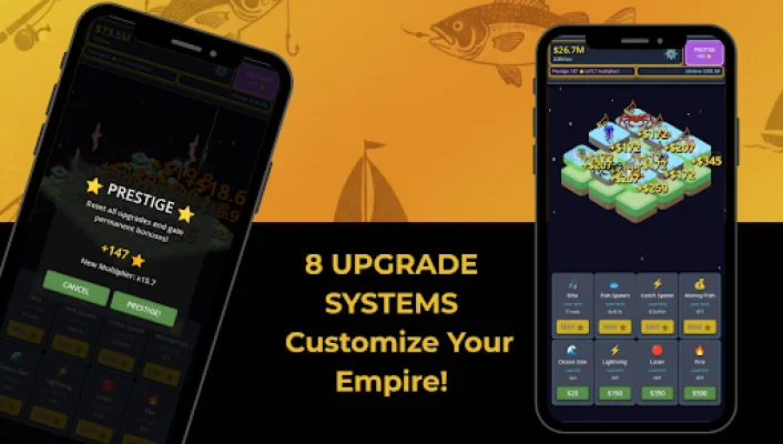 As you progress in the game, you can also unlock powerful cosmic forces to aid in your fishing journey. And if you reach your earning limit, you can reset your progress and gain permanent multipliers through the prestige system. This allows for faster progression and higher profits. The game also offers offline progression, so your fishing empire continues to grow even when you're not playing.