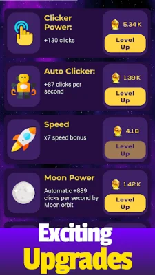 Why is this the best idle clicker game in space? First, you can discover and explore stunning planets across the universe. With each new planet, you will unlock new mysteries and expand your empire. Second, you have powerful boosters at your disposal, such as Speed, Moon Support, and Critical Hit, to accelerate your progress. Third, you can upgrade your boosters and optimize your idle rewards, allowing you to dominate the universe.