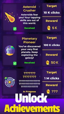 Embark on a galactic journey and conquer space! Unlock mysterious planets and expand your empire across infinite galaxies. Boost your journey with Speed, Critical Hit, and Moon Support. Earn rewards, unlock achievements, and showcase your space legacy. Tap, upgrade, and explore the vast universe in this addictive idle clicker game.