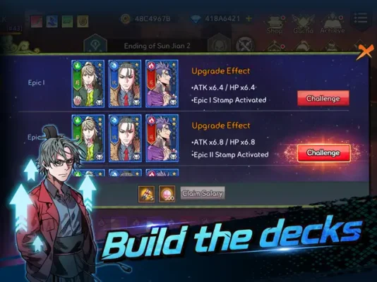 Collect legendary heroes like 'Liu Bei', 'Cao Cao', and 'Sun Jian' and build your own powerful deck. With a variety of heroes and skills to choose from, including 'Guan Yu', 'Zhang Fei', 'Zhao Yun', 'Lu Bu', and 'Zhuge Liang', the possibilities are endless. Create the ultimate deck and dominate your opponents in battle.