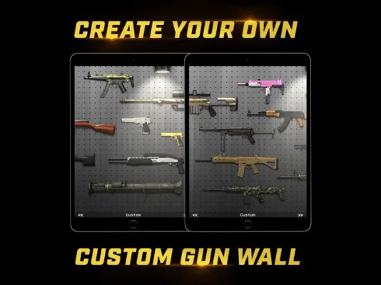 But that's not all - iGun Pro® also allows you to customize your gun collection to your liking. Display your guns in a personalized Gun Wall, adjust recoil, motion blur, and slow motion to enhance your shooting experience, and even give your guns a unique look with custom skins.