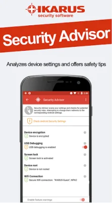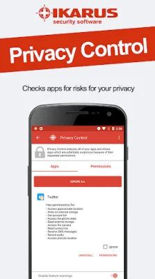 IKARUS mobile.security is an application that provides reliable protection for your mobile device. It offers daily updates for the latest threats and is supported by IKARUS technicians. The app is available in multiple languages, making it accessible to a wider audience. Users also have the option to upgrade to the full version, which includes additional features such as Theft Protection, Privacy Control, and URL filtering. The app has several functions, including an AntiVirus feature that scans apps and files for infections and allows users to schedule automatic updates. The Monitoring feature allows users to choose which apps and files to monitor and can also block USSD codes. The Security Advisor scans the device's settings and provides recommendations for improving security. The Privacy Control feature tests installed apps for potential privacy risks and ranks them on a criticality scale. The Theft Protection feature automatically locks the device if the SIM card is changed. The URL Filter provides protection against malware and other internet threats by warning users about potentially harmful websites. It is important to note that the full version of the app is available for a free trial. The app also requires certain permissions, such as Device Administrator and accessibility services, to function properly. User data, including email address, license, and device information, is transmitted to IKARUS for update and licensing purposes. However, the app does not transmit any other private data and has a privacy policy in place to protect user information. IKARUS mobile.security is designed for end or private customers, while a separate version is available for companies. IKARUS Security Software GmbH has been developing and operating security technologies since 1986, including their own scan engine and cloud services for endpoint, mobile device, and email gateway protection. Their modular threat intelligence platform is also a leading technology in the industry.