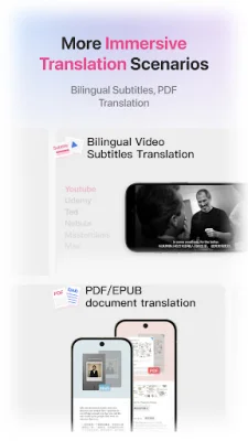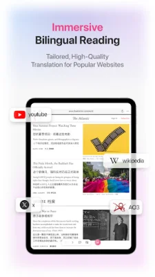 The Immersion Translator also boasts special AI translation features, including AI Expert, which allows users to set a specific industry identity for the AI to provide more professional translations for specific fields. It also offers AI Glossary, which allows users to set a custom glossary for the AI to use for specific terms, increasing the accuracy of translations. The application also offers AI Smart Contextual Translation, which first understands the full context and professional terms before translating, providing a more accurate translation experience. Additionally, it offers AI Subtitles, which intelligently recognizes spoken audio in videos without subtitles and automatically generates bilingual subtitles.