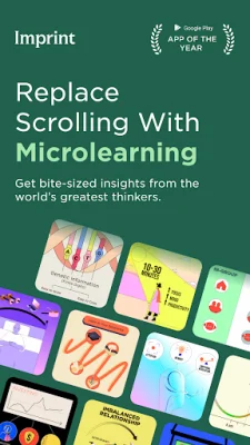 Imprint is an educational application that provides users with a visual guide to the world's most important knowledge. It covers a wide range of topics including psychology, philosophy, history, finance, leadership, business, health, science, and technology. The app aims to help users master essential concepts quickly and easily through elegant visuals that clarify key ideas and keep them focused. With Imprint, users can complete a chapter in just two minutes or less, making it perfect for bite-sized learning sessions throughout the day.