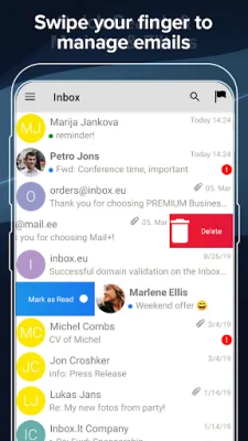 One of the key features of the Inbox.eu app is its instant notifications. Users will receive push notifications, eliminating the need to manually check their emails. The app also supports multiple accounts, allowing users to access their different Inbox.eu email accounts directly from the app. With swipe actions, users can quickly delete emails or mark them as unread. The app also offers a quick search and filter function, making it easier to find specific emails.