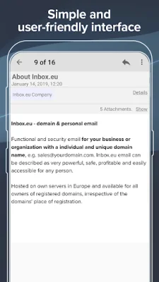 In terms of security, the Inbox.eu app ensures the protection of user data through the use of SSL for data storage and sending. It also offers a "more secure" login method using OAUTH2. The app also has the ability to synchronize contacts and calendars.