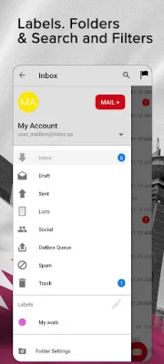 One of the key features of this application is the ability to label messages and use quick search and filters to easily find specific information. The app also prioritizes security by using SSL for data storage and sending, as well as offering a more secure login method through OAUTH2. Users can also synchronize their contacts and calendar, change their signature, and send messages from aliases.