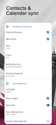 The app offers customizable options such as choosing a sound for notifications and selecting a beautiful dark or other color theme. It also has a "Do not Disturb" mode from 22:00 to 7:00 for uninterrupted use. The app is compatible with devices running on Android 7.0 or higher.