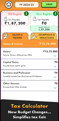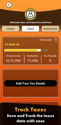 The app allows you to estimate your taxes for the upcoming years, including FY 2025-2026, FY 2024-2025, and FY 2023-2024. It also offers comprehensive loan calculations for various types of loans, such as home loans, car loans, mortgages, and educational loans. You can also track all your insurance payments in one place and save calculation details on your device for future reference.