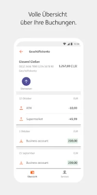 Mit dieser Anwendung haben Sie alle Ihre ING Business-Konten auf einen Blick. Sie können Ihre Umsätze übersichtlich aufgelistet sehen und sind immer gut informiert über Push-Benachrichtigungen zu Umsätzen und anderen wichtigen Informationen.