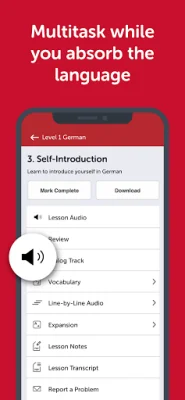 The app offers a 7-day free trial of any language course, as well as new audio and video lessons every week for life. It also has an offline mode, daily vocabulary lessons, and multiple playback options. For Basic users and above, there is a large library of audio and video lessons, in-depth lesson notes, and progress tools. Premium users and above also have access to line-by-line breakdowns of lesson dialogues, a word bank to create a custom vocabulary list, and the option for 1-on-1 learning with a personal teacher.