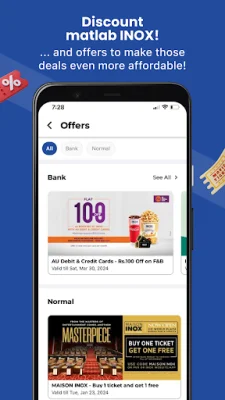 The INOX app also includes features to make your movie experience even better. You can set alerts for upcoming movies, easily navigate and book tickets and food, and plan your movie experience in advance with show end time information. The app also offers personalization, recommending movies, food, and seat preferences tailored just for you. Plus, you can use InstaPay, a trusted digital wallet, for safe and seamless transactions.