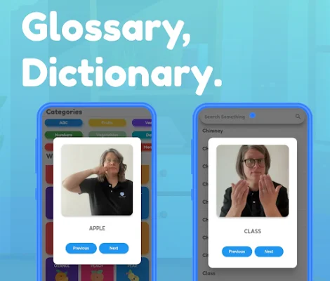 The app includes a dictionary and glossary, allowing users to reinforce their knowledge of ASL and easily look up signs they may have forgotten. This feature is especially helpful for beginners who may not be familiar with the ASL alphabet or basic signs.