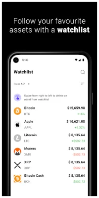 The application supports a wide range of assets, including US market stocks, ETFs, and index funds. It also includes the top 500 digital assets such as Bitcoin, Ethereum, Litecoin, and more. With over 30 fiat currencies available, users can easily track the value of their assets in their preferred currency.