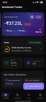 InvTracker is a user-friendly and efficient application that helps you keep track of your investments and returns. It eliminates the need for complicated charts and stock tickers, allowing you to simply record your investments and returns. The app automatically calculates your real returns and provides professional return metrics such as XIRR and MOIC. It also allows you to set financial goals and track your progress, while providing smart notifications for income and maturity dates.