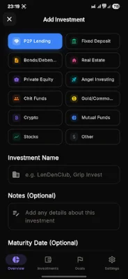 InvTracker is perfect for tracking a variety of investments, including fixed deposits, P2P lending, bonds, real estate, chit funds, gold, crypto, and more. It is specifically designed for investments where you put money in today and get money back later, making it ideal for those who want to track their returns over a longer period of time.