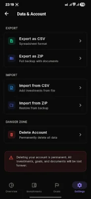 The app also offers smart metrics such as XIRR and MOIC, which are used by banks and professionals to accurately measure returns. It works offline and automatically syncs your data when you're back online. You can also sign in with Google to backup your data and access it from any device. Your financial data is always under your control and not stored on the app's servers.