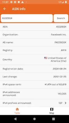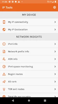 'My IP Geolocation' is a user-friendly application that allows you to easily find out information about your public IP location. This includes details such as your county, city, postcode, internet service provider (ISP), and precise location coordinates. You can even compare this information to the GPS coordinates on your device and view it on a map in the 'Confidence area' submenu. In addition to finding information about your own IP, the 'IPv4 info' feature allows you to quickly obtain specific details about any public IP in the world. This includes estimated location, service area, ISP name, autonomous system number (ASN), and more. The 'Network prefix info' feature provides valuable information about all IP prefixes that are publicly announced to the Internet, along with their correlation to ISPs. This can be useful for understanding the overall structure of the Internet and how different networks are connected. For those interested in learning more about autonomous system numbers (ASNs), the 'ASN info' feature displays quick statistics about any ASN around the globe. This includes detailed information about the currently held public IP address space, estimated service area with map visualization, and adjacent connections to other ISPs. The 'IPv4 space monitoring' feature allows users to stay updated on the distribution, utilization, and availability of public IP addresses between regional internet registries (RIRs). This can be helpful for understanding the current state of the Internet and its resources. Other features of 'My IP Geolocation' include 'Bogon routes', which provides a list of all publicly announced bogon routes with the corresponding ASN, 'AS rank' which ranks ISPs based on their public IP capacity, 'TOR exit nodes' which displays a list of gateways for encrypted TOR traffic, and 'Total IPs per country' which presents a rank of countries based on their overall capacity of public IPs. The application also includes useful tools such as 'IPv4 Mapper' which allows users to keep track of their public IP and its location, 'Ping' which checks ICMP reachability of any host on the Internet, and 'Visual Traceroute' which combines regular 'Traceroute' output with additional information about each hop, including ASN, country, and company name, as well as a map visualization. With its user-friendly interface and comprehensive features, 'My IP Geolocation' is a valuable tool for anyone looking to learn more about the Internet and its resources.