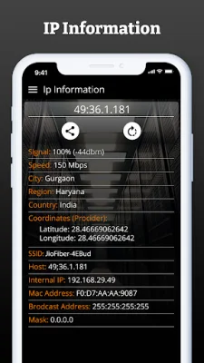 The app includes a variety of features such as identifying your IP address, analyzing network speed, performing ping tests, and scanning connected devices. It also offers real-time internet connectivity checking and an IP location finder that can reveal your ISP, region, city, and coordinates. Additionally, the WiFi Signal Strength Meter allows you to monitor your wireless network signal in real-time.
