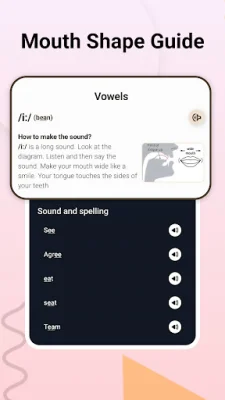 In addition to sound structure, the app also provides guidance on mouth shape for each sound. This is a key factor in achieving accurate pronunciation, and the app offers unique insights into how mouth shape affects pronunciation. By visualizing and applying the correct mouth shape during practice, you can improve your ability to pronounce words more naturally and effectively.