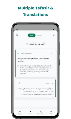 Iqraa also offers the option to create custom playlists, combining different Surahs, Ayahs, and Reciters. This feature is perfect for those who are trying to memorize specific parts of the Quran or follow a specific routine. The application also provides a comprehensive library of Tafasir (explanations) and Translations in multiple languages, available for offline reading.