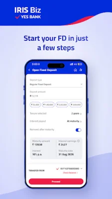 With IRIS Biz, you can open current accounts and apply for loans, simplifying your banking tasks and saving you time. The app also offers attractive interest rates on fixed deposits, allowing you to secure your financial future and watch your savings grow steadily. You can also view all your banking relationships, including accounts, loans, and deposits, in one place, making it easier to manage your finances.