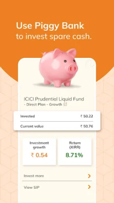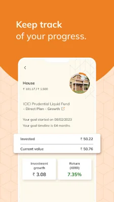 The app makes it easy to create and track your financial goals, whether it's buying a house, saving for retirement, or paying for your child's education. You can invest via SIP (systematic investment plan) or lump sum, depending on your preferences and financial situation. The app also offers personalized investment advice by assessing your risk appetite through a few simple questions. You can track your goal investments over time and make changes to your goals as needed.