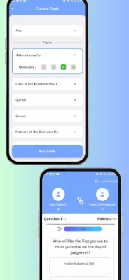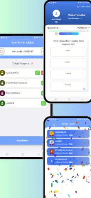 In terms of gameplay, the app offers the option for 1v1 battles online with other Muslims around the world. Users can also challenge their opponents to rematches in these battles. For a more personalized and private gaming experience, the app allows users to battle with friends using a room code. Rematching with friends is also supported, allowing for continuous play without interruptions.