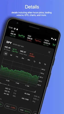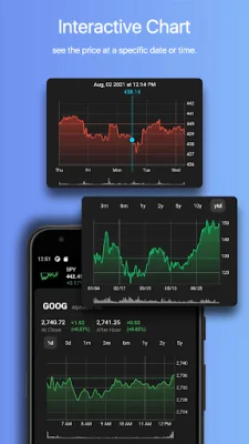 Stay up-to-date with real-time quotes that show price changes, percentage, and market capitalization. Users can tap on any quote to see an interactive chart and key details in real-time. The color-coded Sparklines feature provides a visual representation of stock performance throughout the day, making it easy to track investments.
